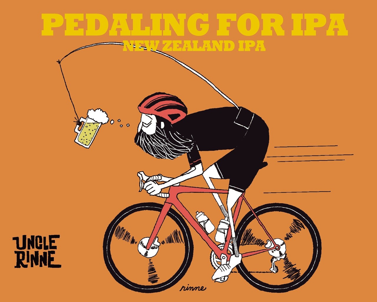 ペダルを漕ぐ全ての原動力はIPA!ビールを前にぶら下げることでパワーを発揮するUNCLE RINNE。そんな遊び心たっぷりのサイクリストの姿を重ねた、軽快で飲み進めたくなるテイスト。